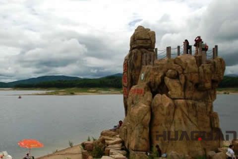 由于松花江被豐滿大壩攔腰截斷,在其上游便形成了一個巨大的湖泊——松花湖。在碧波萬頃的湖面上,鑲嵌著一座翡翠般的小島,人稱“五虎島”。關于這個名字,當?shù)亓鱾髦粋€美麗的傳說。
